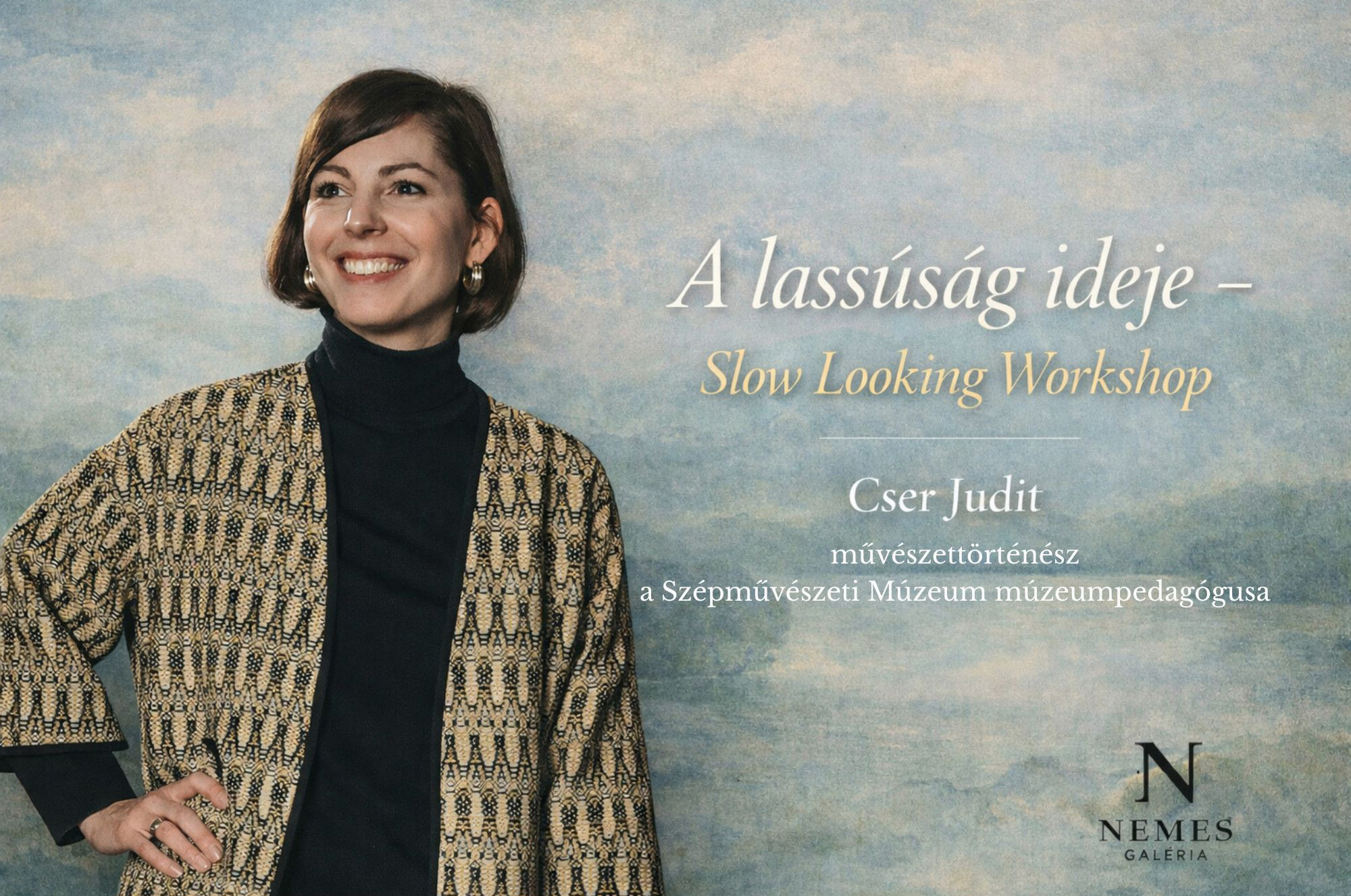 Átlagosan pár másodpercet töltünk egy-egy műalkotás előtt. Mi történik, ha ez az idő kitágul? Ha nem továbblépünk, hanem időt adva magunknak a kapcsolódást választjuk? A slow looking a nemzetközi Slow Art mozgalomhoz kapcsolódó szemlélet és gyakorlat, amely a tudatos lassításon és az irányított figyelmen keresztül új minőségű találkozást kínál a művészettel. Nem információt ad, hanem lehetőséget kínál ahhoz, hogy a műtárgyon keresztül belső utazásra induljunk.