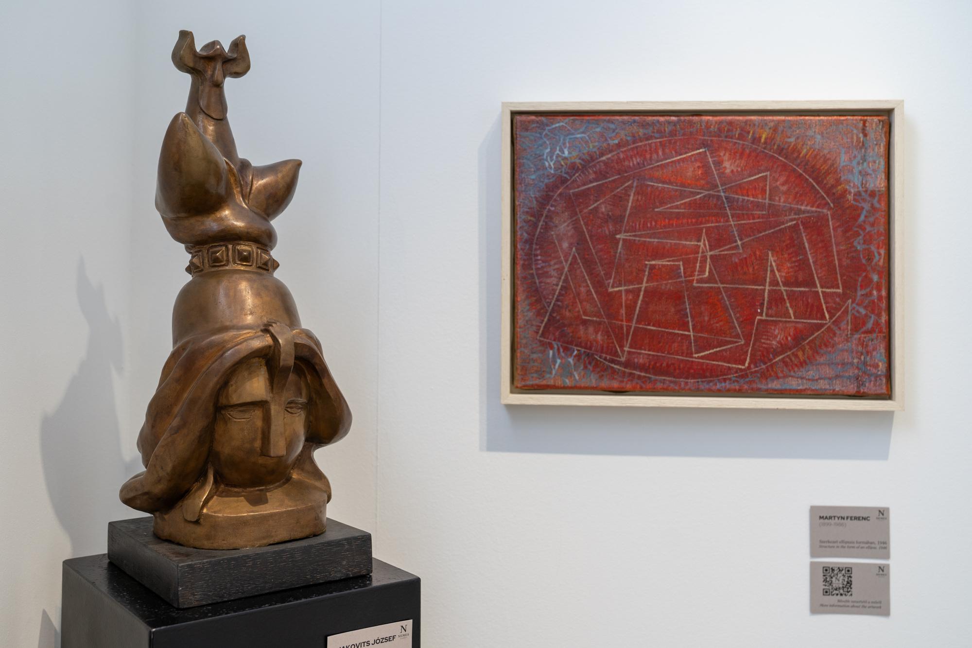 A standon kiemelt figyelmet kap a geometrikus absztrakció nemzetközileg is elismert mesterének, Maurer Dórának a Raszterközi Quasi-kép-je, amely a szabály és szabadság finom egyensúlyából épít vizuálisan és gondolatilag is intenzív rendszert. Aba-Novák Vilmos, a két világháború közötti magyar festészet egyik legkarakteresebb alakja, Szolnoki lacikonyhá-jában a falusi vásárok nyüzsgő világa elevenedik meg. Szóbel Géza, a második párizsi iskola magyar származású festője Két alak című művével az 1940-es évek utáni európai festészet lírai és intellektuális vonulatát képviseli.